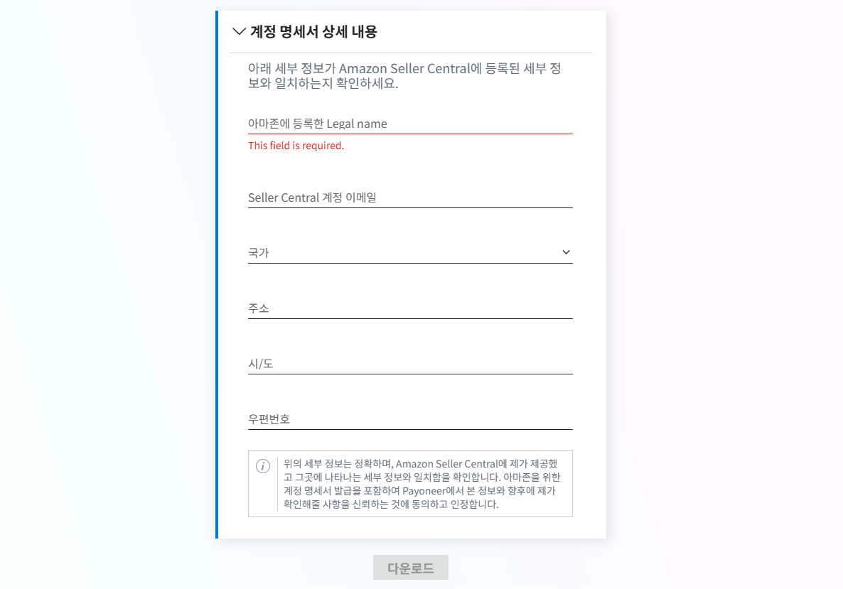 아마존 가입용 Payoneer 은행 명세서 출력 방법